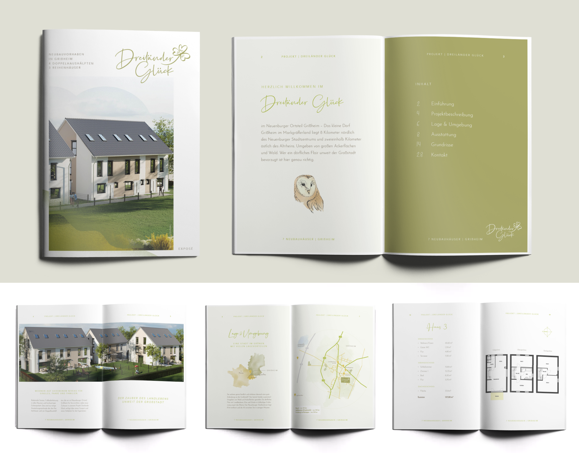 Nameing, Branding, Logo, Broschüre, Neubauexposé, Baustellenschild, Offline Mailing, Werbemittel